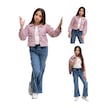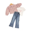 Kız Çocuk Kazayağı Desenli Pantolonu Püskül Detaylı Ceketli Takım Çok Renkli