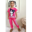 Kız Çocuk Kedi Desenli Kısa Kollu Tshırt Eşofman 2'li Takım-1000 Koyu Pembe