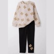 Kız Çocuk Kelebek Baskılı Pamuklu Eşofman Takım-14587 Bej