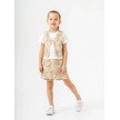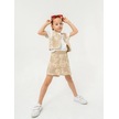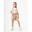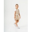 Kız Çocuk Keten Üçlü Şort Etekli Yelekli Takım-15888 Bej