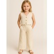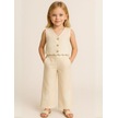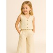 Kız Çocuk Keten Yelek Pantolon Takım-15971 KREM
