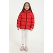 Kız Çocuk Kırmızı İçi Polarlı Kapüşonlu Su Geçirmez Rüzgara Dayanıklı Cepli Şişme Kışlık Mont Kırmızı