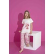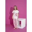 DeFacto Kız Çocuk Pijama Takımı Baskılı Kısa Kollu Üst Beli Lastikli Uzun Alt E2220A825SMER85 Ekru