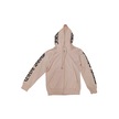 Kız Çocuk Kolları Yazı Desen Fermuarlı Kanguru Cepli Pudra Hırka