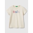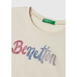 Kız Çocuk Krem Simli Logo Baskılı T-shirt Bej
