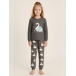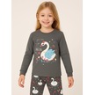 Kız Çocuk Kuğu Baskılı Pamuklu Pijama Takımı-16057 Haki