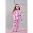Kız Çocuk Desenli Düğmeli Uyku Bantlı Alt Üst Pijama Takım Pembe