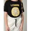 Kız Çocuk Lemon Tshirt Baskılı Paçası Lastikli Eşofman Takım-11632 Siyahbeyaz