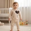 Kız Çocuk Leopar Desenli Kalp Baskılı Alt Üst İkili Gündelik Takım 1-4 Yaş Krem