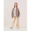 Kız Çocuk Leopar Desenli Kot Ceket İçi T-shirt Takım-15511 Kahverengi