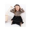 Kız Çocuk Leopar Desenli Uzun Kollu Fırfırlı Elbise Bandana Takım Elb-0059 Siyah
