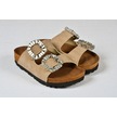 Kız Çocuk Mantar Tabanlı Çift Tokalı Ortopedik Birkeen Arizona Taşlı Terlik Bej