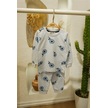 Kız Çocuk Mavi Çiçekli Desenli Uzun Kollu Pijama Takımı-893 Mavi