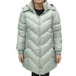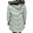 Kız Çocuk Mint Yeşili Kapüşonlu V Desenli Peluş Astarlı Fermuar Cepli Kapitone Midi Boy Şişme Mont Mint Yeşili