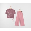 Kız Çocuk Mıu Taşlı İkili Dokuma Takım 7276 Pembe