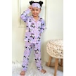 Kız Çocuk Mor / Lila Renk Sevimli Kedi Desenli Uzun Kollu Pijama Takımı Göz - Uyku Bandı Dahil Lila Mor Lila - Mor