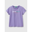 Kız Çocuk Mor Simli Logo Baskılı T-shirt Mor
