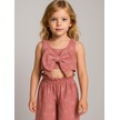 Kız Çocuk Müslin Crop Pantolonlu Takım-16077 Gül Kurusu