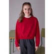 Kız Çocuk Nakış İşlemeli Kısa Kesim Sweatshirt - Kırmızı Kırmızı