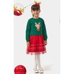 Kız Çocuk Oh Deer Tüllü Baskılı Yılbaşı Elbisesi Nbk-24909 Yeşil