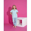Kız Çocuk Önden Düğmeli Kalp Desenli Mavi Pijama Takımı-1265 Mavi