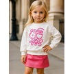 Kız Çocuk Pamuklu Çiçek Desenli Sweatshirt-16337 Ekru