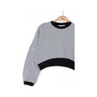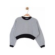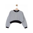 Kız Çocuk Pamuklu Çizgili Crop Sweatshirt-14715 Siyahbeyaz