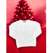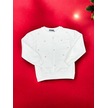 Kız Çocuk Pamuklu İnci İşlemeli İnce Sweatshirt-15007 Ekru