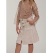 Kız Çocuk Pamuklu Keten Yırtmaçlı Cepli Etek-15612 Bej