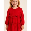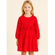 Kız Çocuk Pamuklu Mevsimlik Astarlı Fırfırlı Bol Elbise-14441 Kırmızı