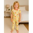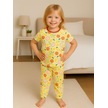 Kız Çocuk Pamuklu Meyve Desenli Kısa Kol Pijama Takımı-16027 Sarı