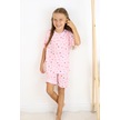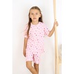 Kız Çocuk Pamuklu Penye Kumaş Şortlu Pijama Takımı Beyaz - Pembe