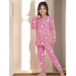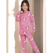 Kız Çocuk Desenli Düğmeli Uyku Bantlı Alt Üst Pijama Takım Pembe