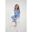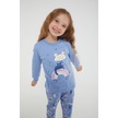 Kız Çocuk Pamuklu Uzun Kollu Kedili Pijama Takımı-11394 Indigo