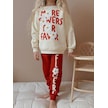 Kız Çocuk Papatya Desenli 3 İplik Şardonlu Takım Kırmızı