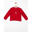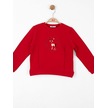 Kız Çocuk Parlak Geyik Baskılı Sweatshirt-13487 Kırmızı