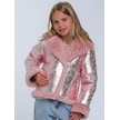 Kız Çocuk Parlak Kumaş İçi Peluş Detaylı Tasarım Mont-14266 Pembe