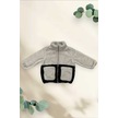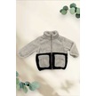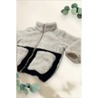 Kız Çocuk Peluş Ekru Siyah Cepli Fermuarlı Welsoft Kışlık Mont Ekru