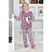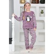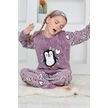 Kız Çocuk Peluş Kumaş-göz Bantlı Penguenli Pijama Takımı 12281 Lila