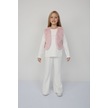 Kız Çocuk Pembe Renk Peluş Yelekli 3 Parça Alt Üt Takım Toz Pembe