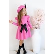 Kız Çocuk Pembe Sofia Pamuklu Fiyonk Detaylı Elbise Kep Abiye Takım Pembe