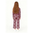 Kız Çocuk Desenli Düğmeli Uyku Bantlı Alt Üst Pijama Takım Pembe