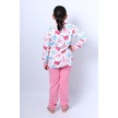 Kız Çocuk Desenli Düğmeli Uyku Bantlı Alt Üst Pijama Takım Pembe