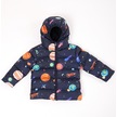 Kız Çocuk Polarlı Kapüşonlu Gezegen Yıldız Desenli Kışlık Şişme Mont & Kaban & Parka Lacivert