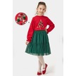 Kız Çocuk Ponponlu Simli Etekli Yılbaşı Takımı Nbk-24903 Kırmızı