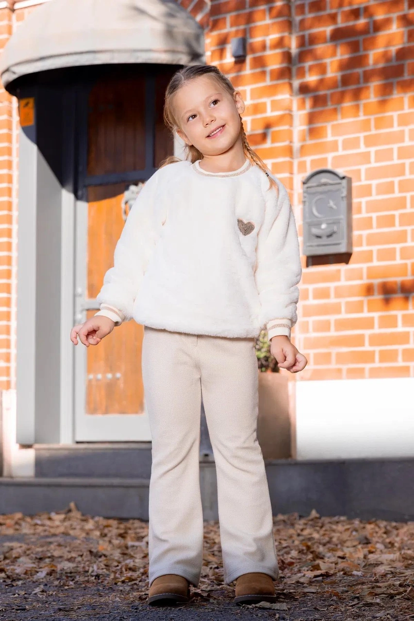 Kız Çocuk Pul Kalp Nakışlı Peluş Sweatshirt Mnt25k209 Ekru