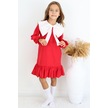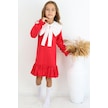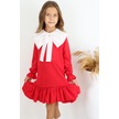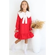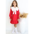 Kız Çocuk Rashel Kırmızı Yakalı Fırfırlı Uzun Kol Keten 23 Nisan 29 Ekim Gösteri Elbisesi Kırmızı