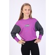 Kız Çocuk Relax Fit Bisiklet Yaka Düşük Omuz Baskılı Crop Sweatshirt - Renk Bloklu & 2 İplik Mor
