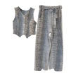 Kız Çocuk Renk Geçişli Oversize Kalıp Yelek Pantolon Takımı Mavi