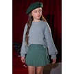 Kız Çocuk Saç Örgüsü Desenli Pileli Triko Etek - Yeşil Yesıl